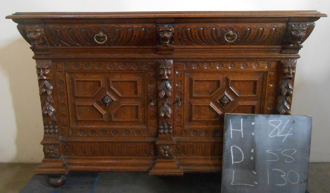 Oak Carved Renaissance Cabinet. H: 84cm. D: 58cm. L:130cm